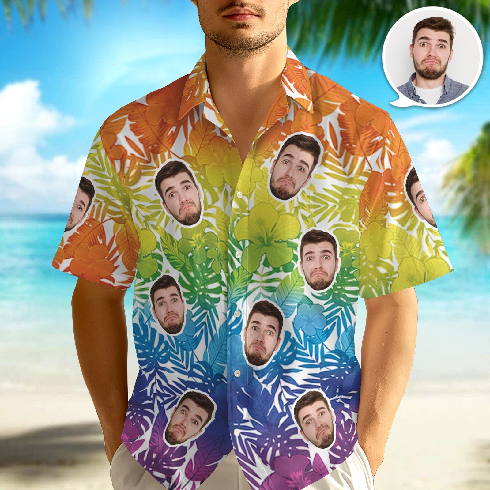 Chemises Hawaïennes Avec Visage Personnalisé, Photos Personnalisées, Fleurs D'art Hawaïennes, Cadeau Pour Hommes