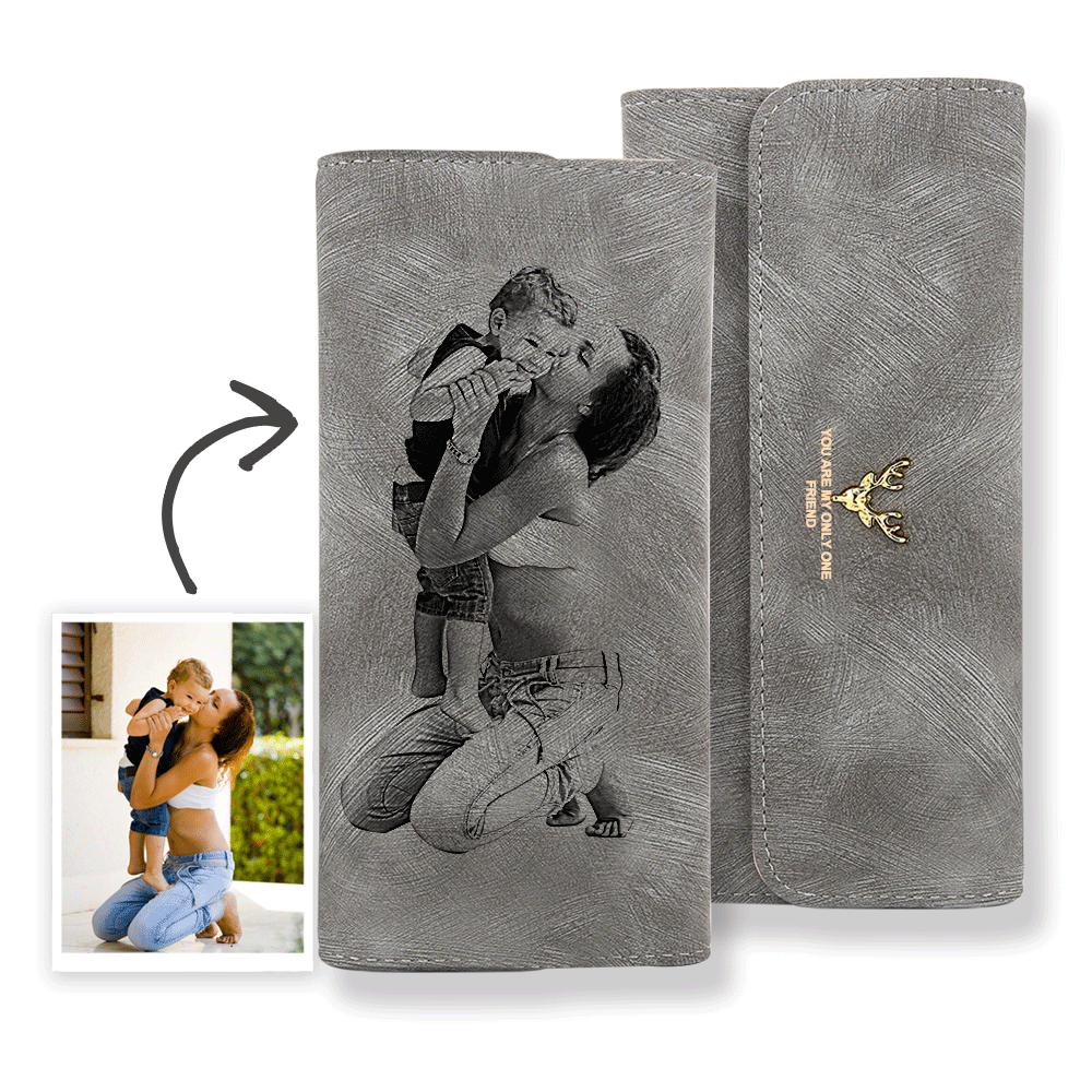 Portefeuille Personnalisé avec Photo Gravée Portefeuille Long en Cuir avec Texte Cadeau pour Femme