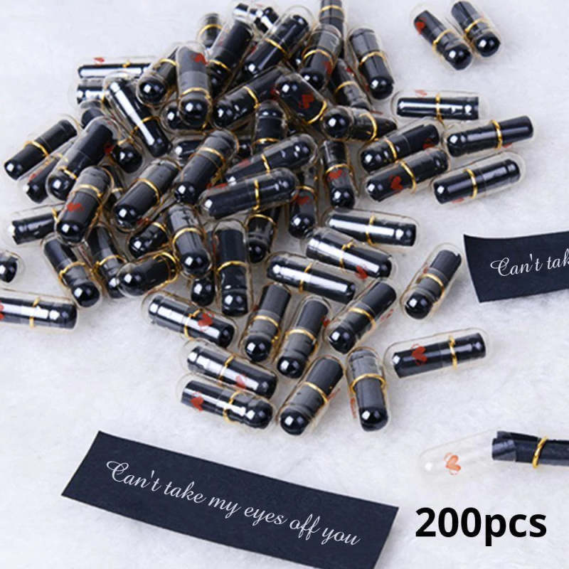 200 Pcs Diy Message Dans Une Bouteille Capsule Lettre Noir