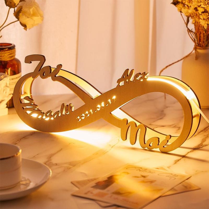 Amour Cadeau Lampe Veilleuse Bois Gravé Personnalisée Nom Personnalisé Lumière Infini