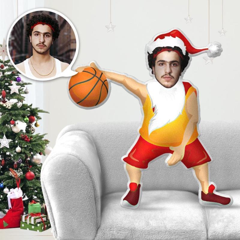 Cadeaux de Noël Oreiller Photo Personnalisé Oreiller Visage Oreiller Minime de Basket-ball du Père Noël Kris Kringle
