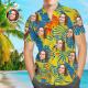 Chemise hawaïenne à imprimé intégral pour hommes, visage de petite amie, feuilles jaunes