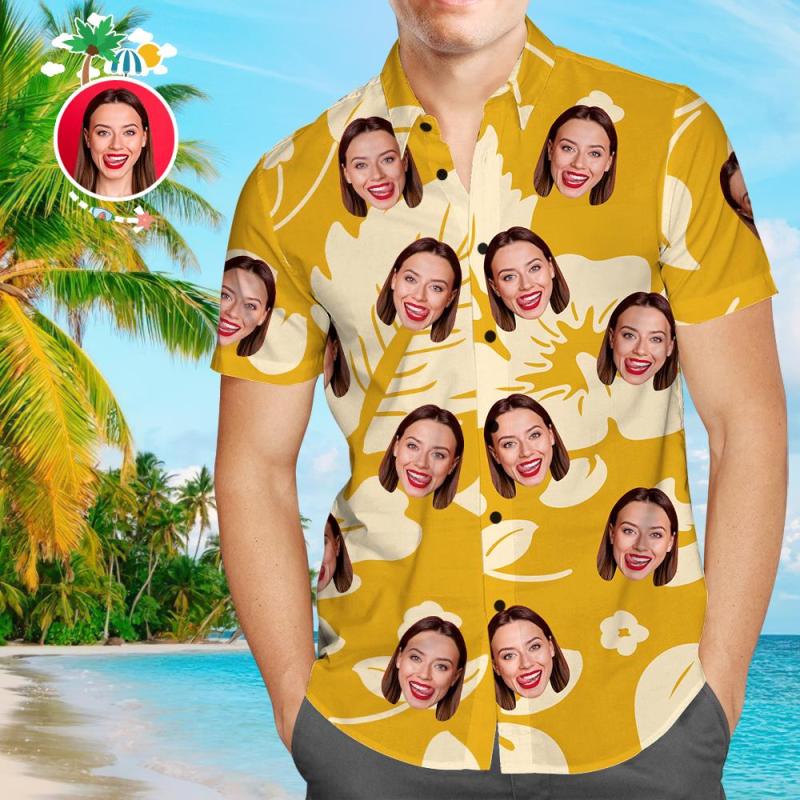 Chemise hawaïenne à imprimé intégral de fleurs jaunes personnalisées pour hommes