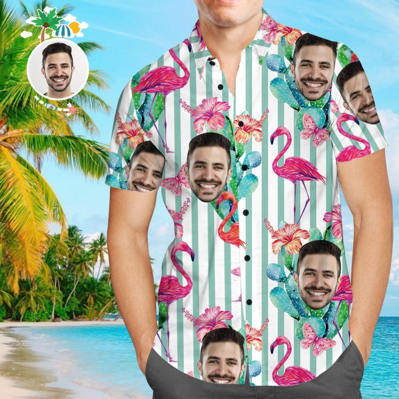 Visage personnalisé chemise hawaïenne visage et feuilles t-shirt personnalisé pour mari
