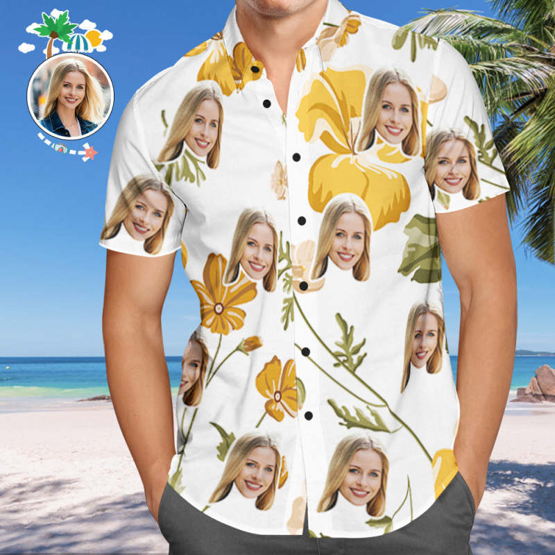 Visage personnalisé chemises hawaïennes chemise de plage tropicale mode chemise florale cadeau pour hommes
