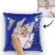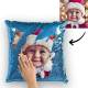 Taie d'oreiller à paillettes magiques Photo personnalisée coussin à paillettes de couleur bleu lac 15.75 pouces * 15.75 pouces cadeaux uniques