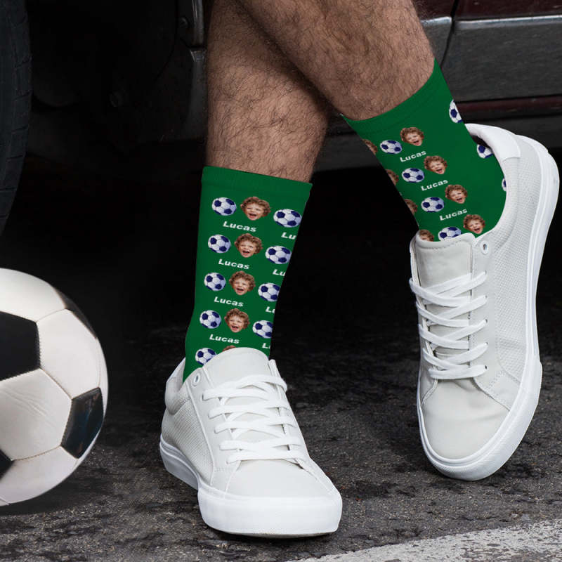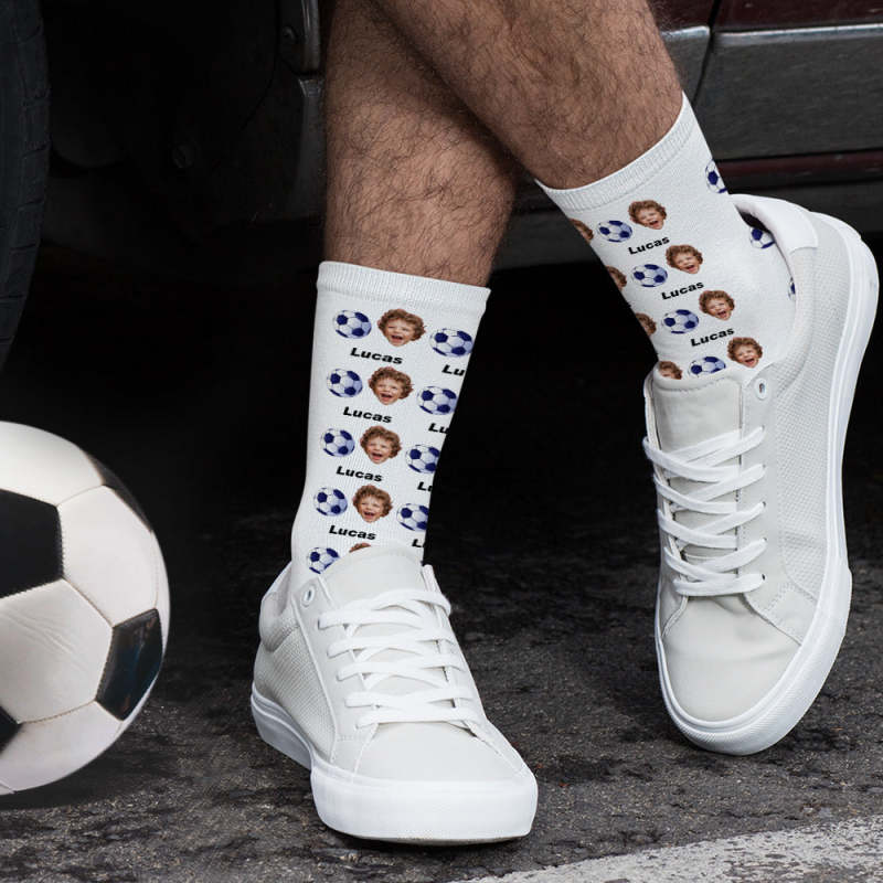 Chaussettes De Football Imprimées Numériques 3d Personnalisées Avec Cadeaux De Visage Et De Texte Pour La Famille