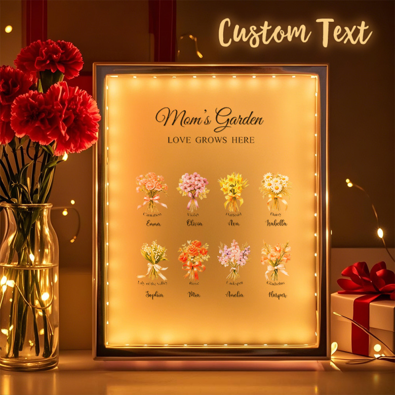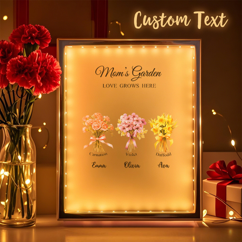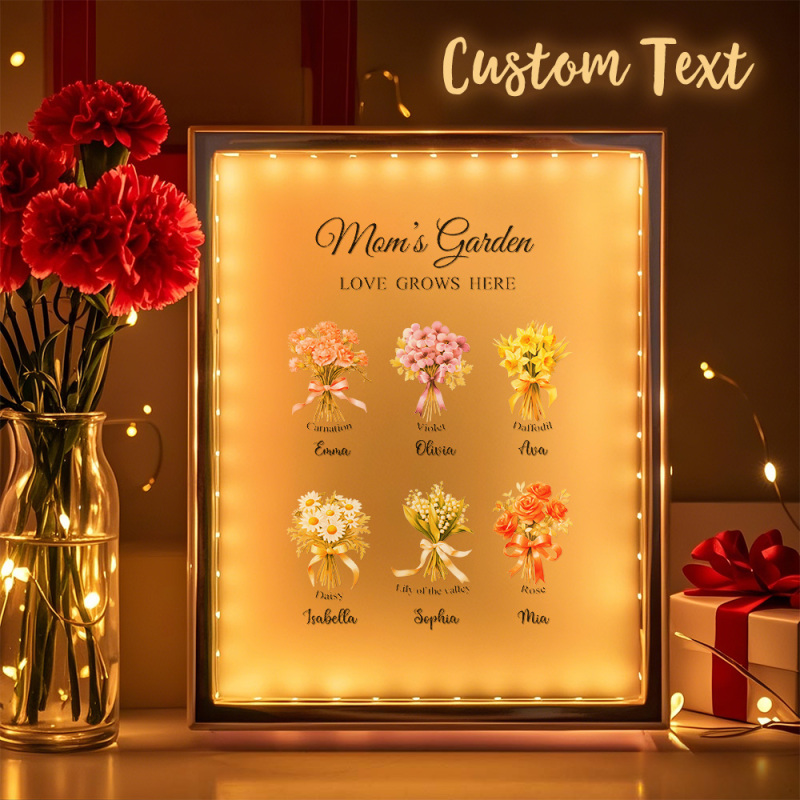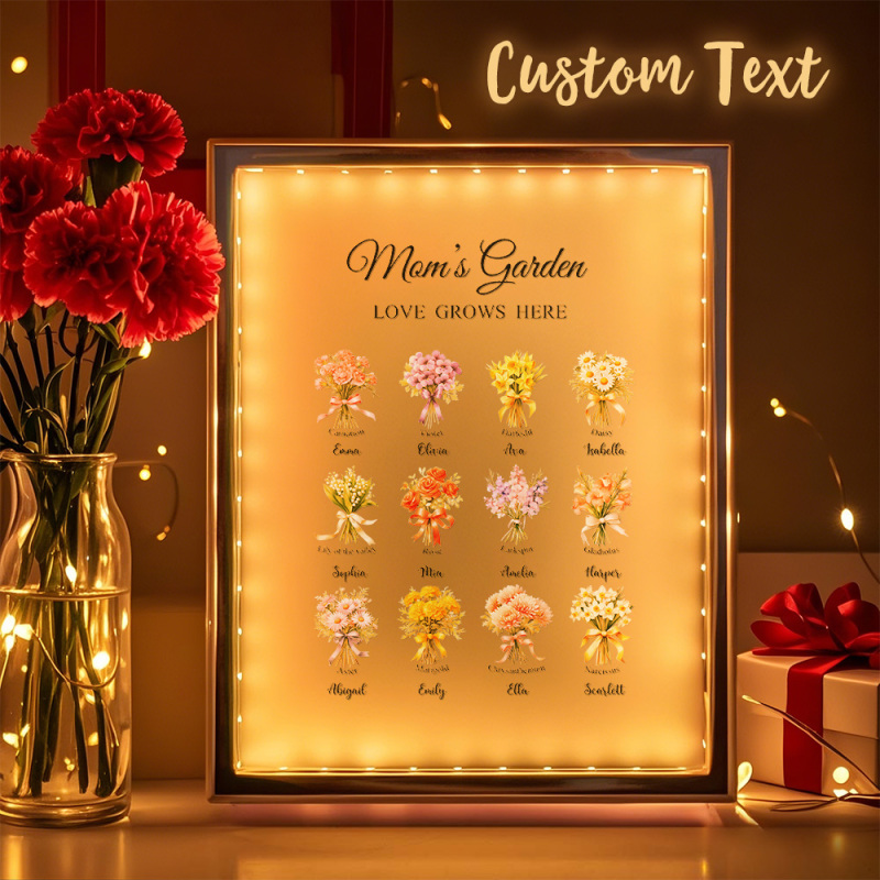 Lampe Miroir Personnalisée Avec Fleur De Naissance, Veilleuse Personnalisée, Cadeau Pour Maman