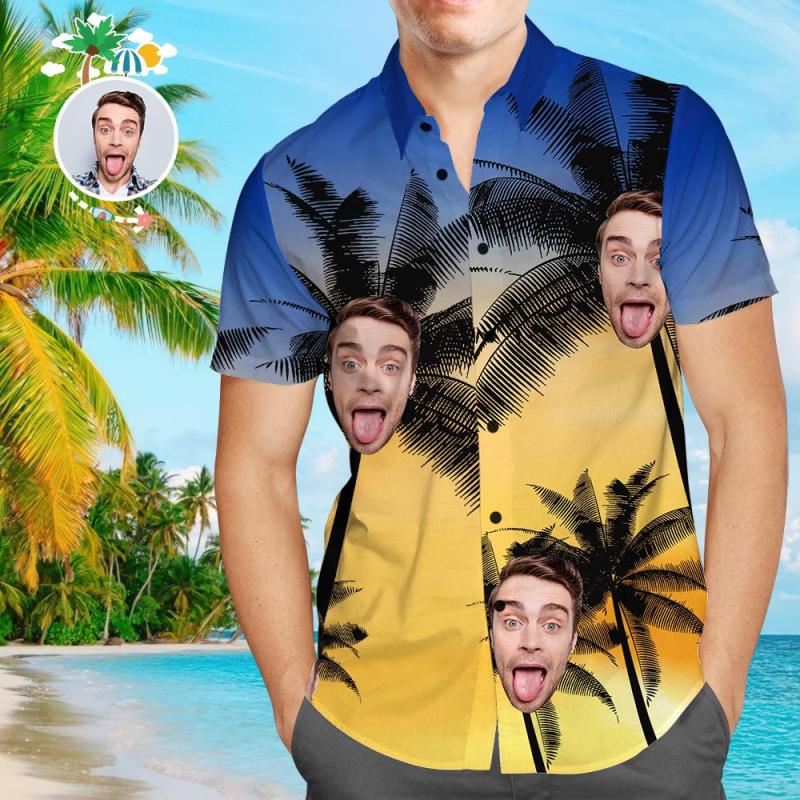 Chemise hawaïenne Funky Face personnalisée Chemises boutonnées jaune coucher de soleil