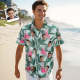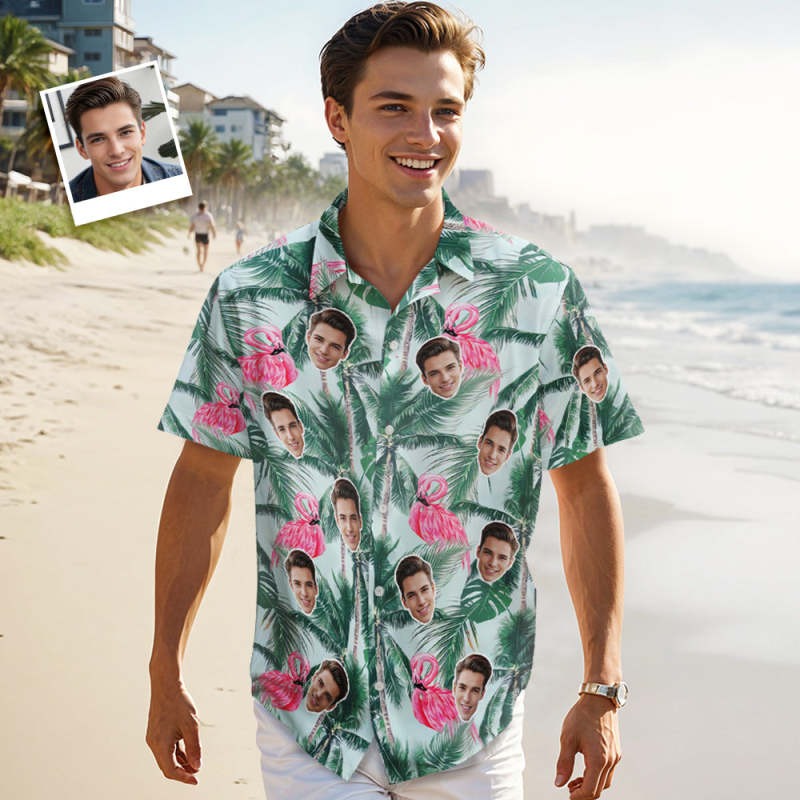 Chemise Hawaïenne Avec Visage Personnalisé, Cocotier Vert, Flamant Rose, Chemise Hawaïenne De Style Tropical