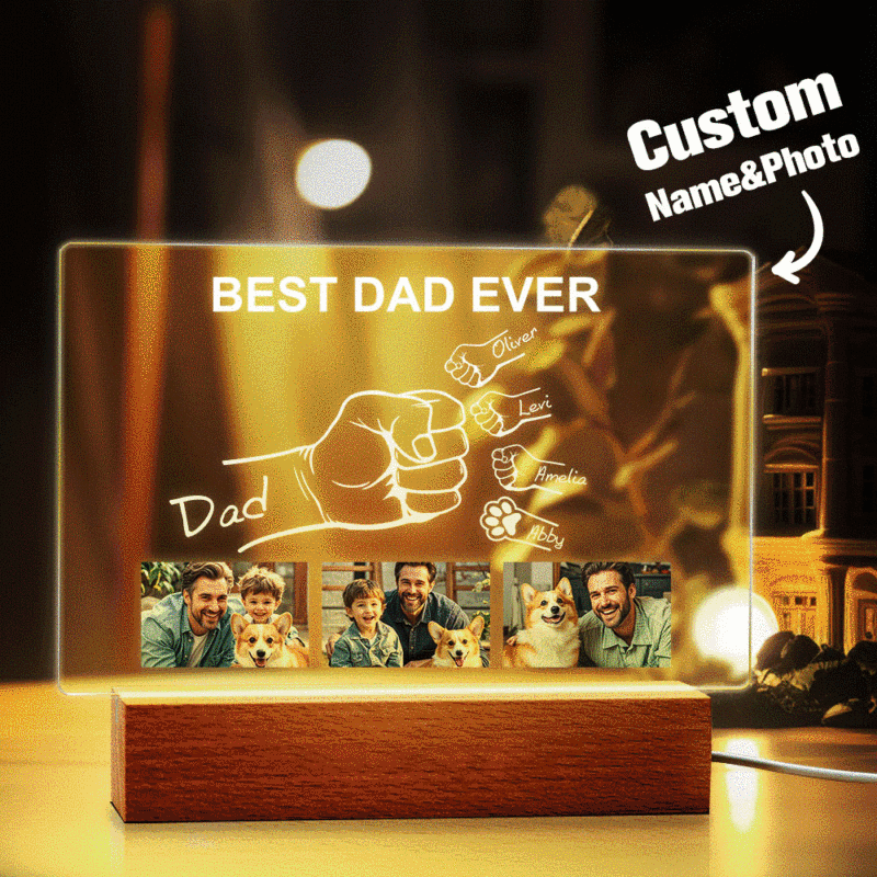 Veilleuse Photo Personnalisée Pour La Fête Des Pères, Lampe De Nuit Personnalisée Pour La Première Nuit, Cadeau De Fête Des Pères Pour Papa