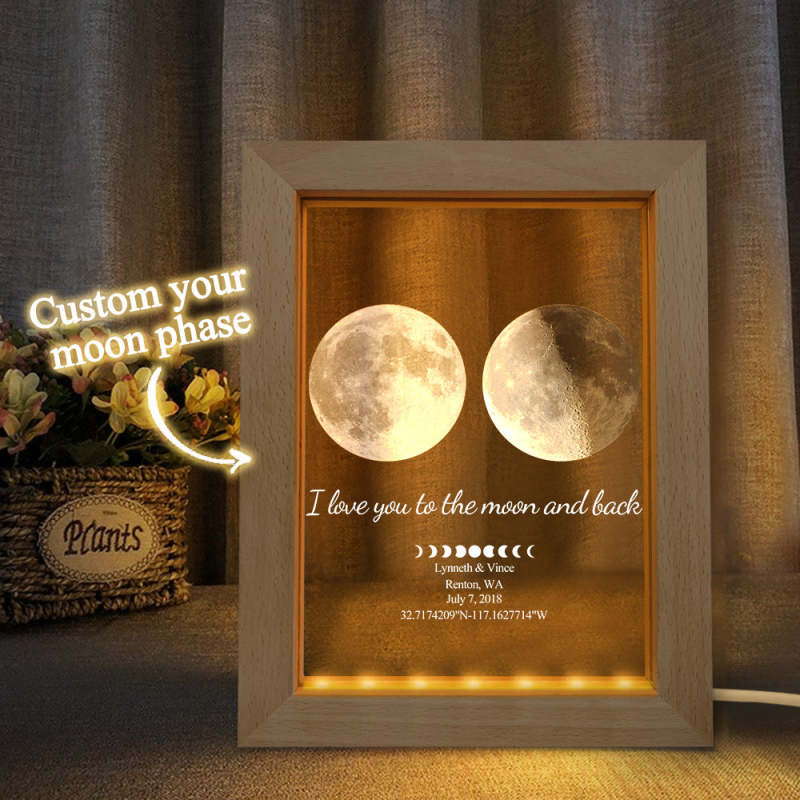 Veilleuse De Phase De Lune Personnalisée, Cadeau Lumineux Personnalisé Avec Cadre En Bois