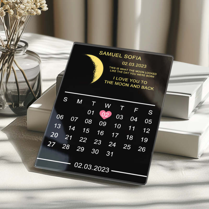 Cadeau Personnalisé De Cadre De Plaque De Calendrier De Plaque De Phase De Lune Pour Le Couple