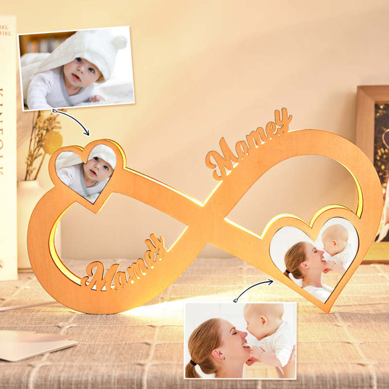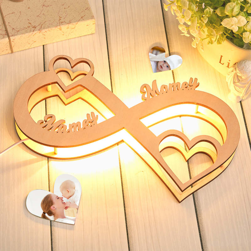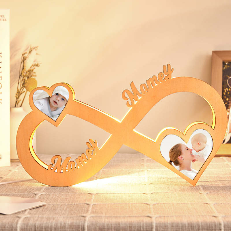 Cadeau D'anniversaire De Lumière De Nuit En Bois D'infini De Lampe Gravée Par Photo Faite Sur Commande