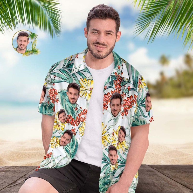 Chemises Hawaïennes Avec Visage Personnalisé, Photos Personnalisées, Fleurs D'art Hawaïennes, Cadeau Pour Hommes