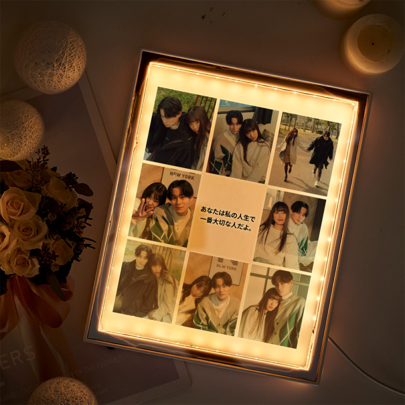 Veilleuse Photo Personnalisée, Cadre Photo Pour Couple, Lettre Personnalisée, Cadeau D'anniversaire, Miroir Lumineux, Miroir Photo, Miroir Avec Nom Personnalisé