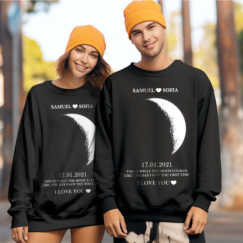 Sweat-shirt Unisexe À Col Rond, Phase De Lune Personnalisée, Noms Personnalisés, Sweat-shirt À Col Rond, Cadeaux De Saint-valentin Pour Couple