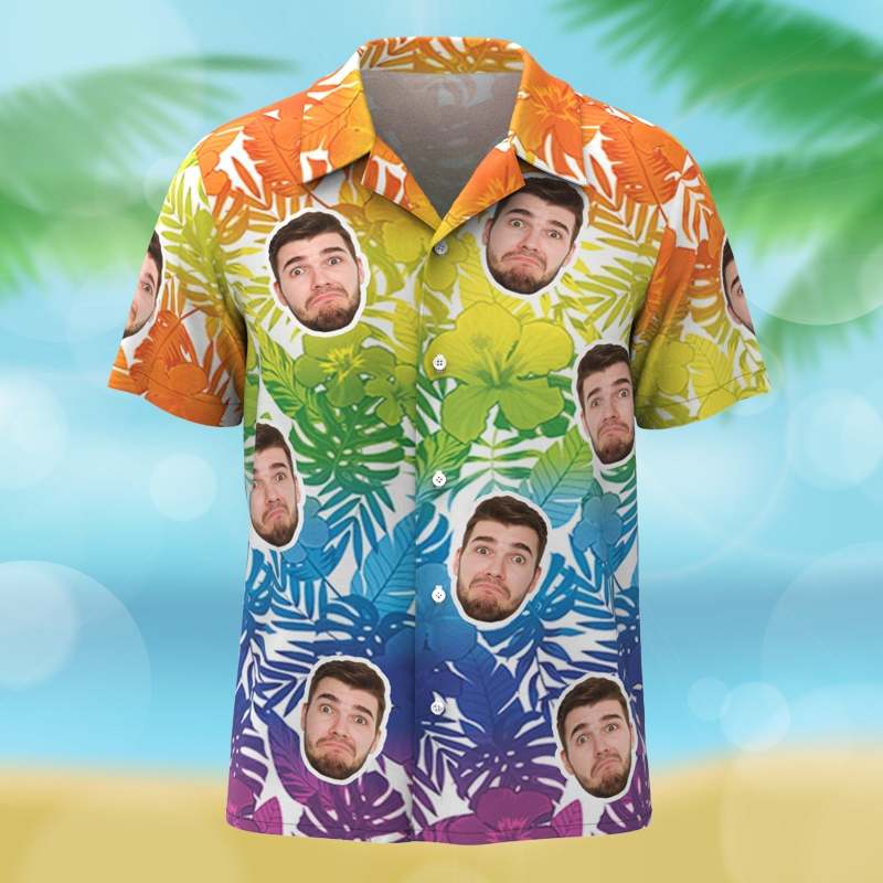 Chemise Photo Personnalisée Visage Personnalisé Chemise Hawaïenne Cadeaux Photo Personnalisés
