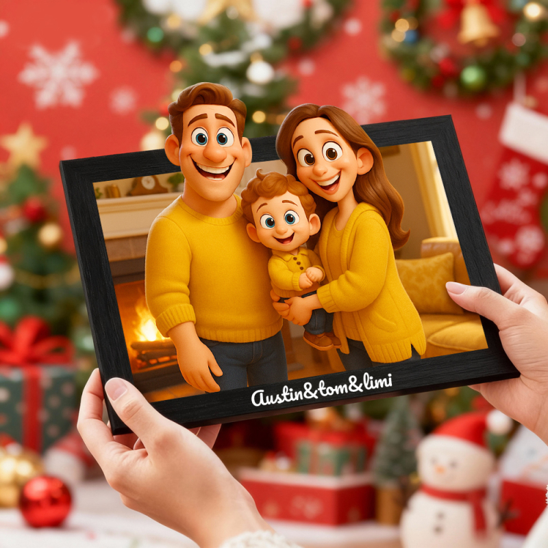 Cadre Photo Personnalisé Style Dessin Animé|Illustration Unique À Partir De Votre Photo|Cadeau Idéal Pour Les Couples, La Famille Et Les Amis