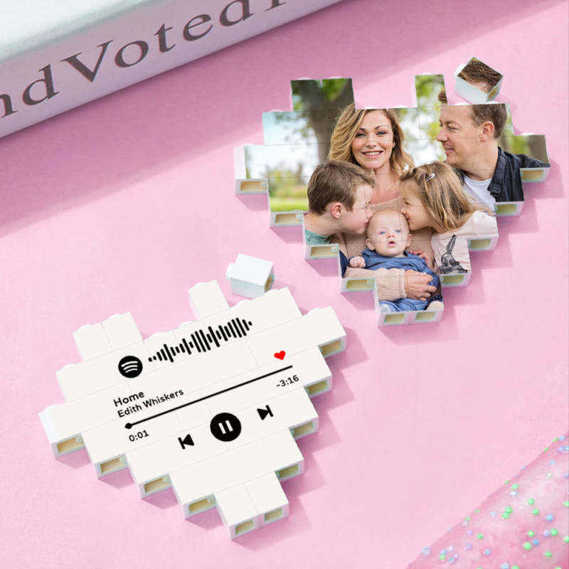 Brique De Construction De Code Spotify Personnalisée, Bloc Photo Personnalisé En Forme De Cœur Pour Amoureux
