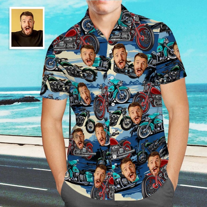 Chemise De Voiture Vintage Personnalisée Chemise Hawaïenne Visage Personnalisé Chemise Hawaïenne Unisexe Personnalisée Pour Lui