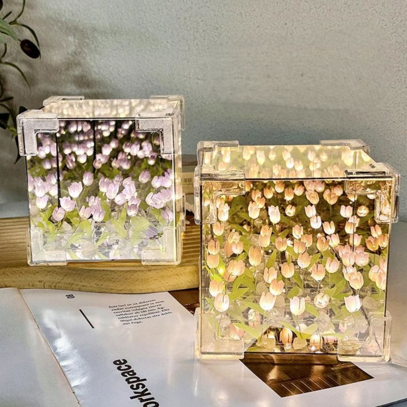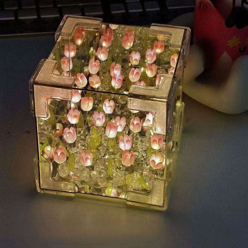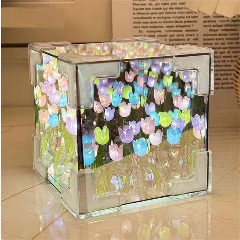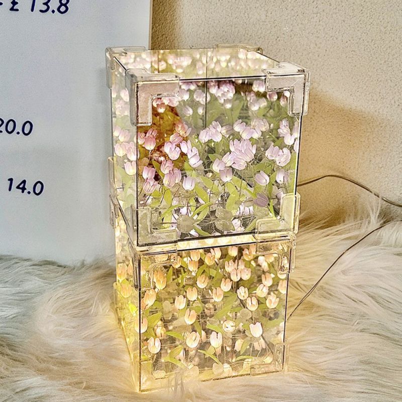 Kit De Lampe Tulipe En Forme De Cube De Mer À Faire Soi-même, Paquet De Matériel, Lampe De Nuit En Acrylique Tridimensionnelle Pour Jardin Infini, Assemblage Facile, Cadeau Pour Petite Amie