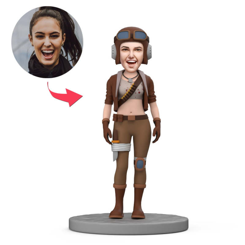 Support De Téléphone Portable Bobblehead Pilote Féminin Bobblehead Personnalisé Avec Texte Gravé
