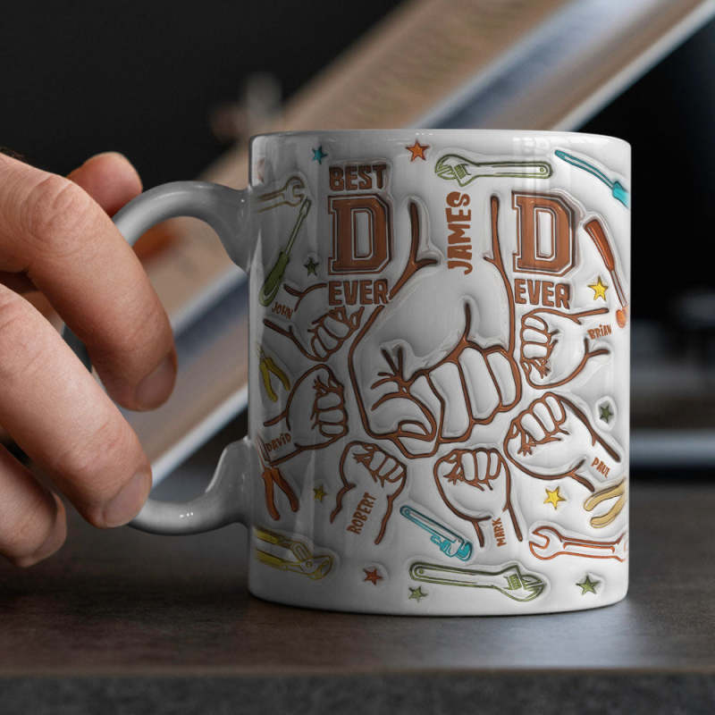 Cadeaux Pour Papa Noms Personnalisés Personnalisé 1-6 Enfants Effet Gonflé 3d Tasse Imprimée Bonne Fête Des Pères