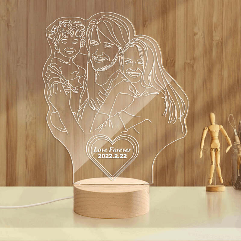 La lampe photo 3D gravée en forme de coeur a mené le cadeau personnalisé de veilleuse pour la famille