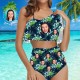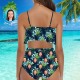 Maillot de Bain Visage Bikini à Volants Personnalisé avec Visage Taille Haute - Feuilles