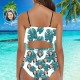 Maillot de Bain Visage Bikini à Volants Personnalisé avec Visage Taille Haute - Feuilles Vertes