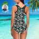 Maillot de bain Visage Maillot de bain Personnalisé avec Visage - Feuilles & Flamant Rose