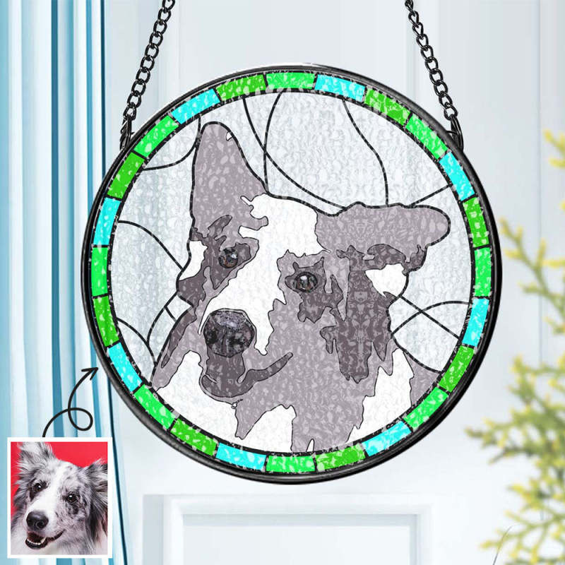Portrait Personnalisé D’animal De Compagnie Vitrail Suncatcher Cadeau Commémoratif Pour Les Amoureux Des Animaux De Compagnie