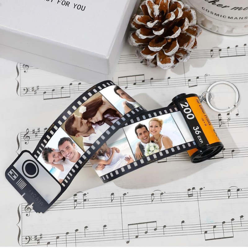 Porte clef Photo Porte-clés Personnalisé en Rouleau de Caméra Coloré - Pour Famille