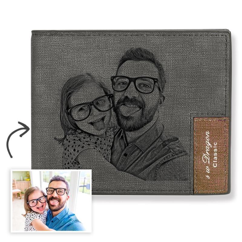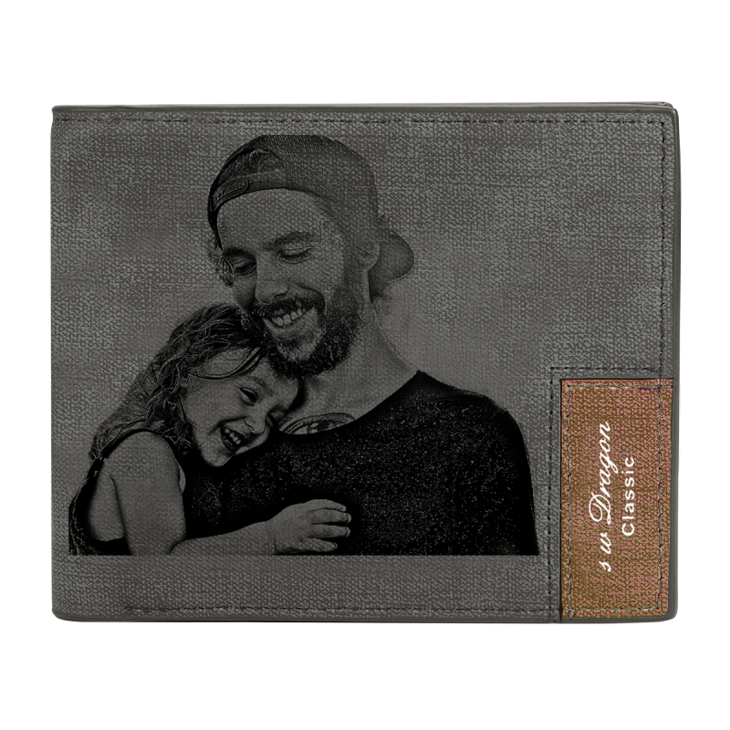 Portefeuille Court Personnalisé pour Hommes avec Photo Gravée Cadeau pour Papa