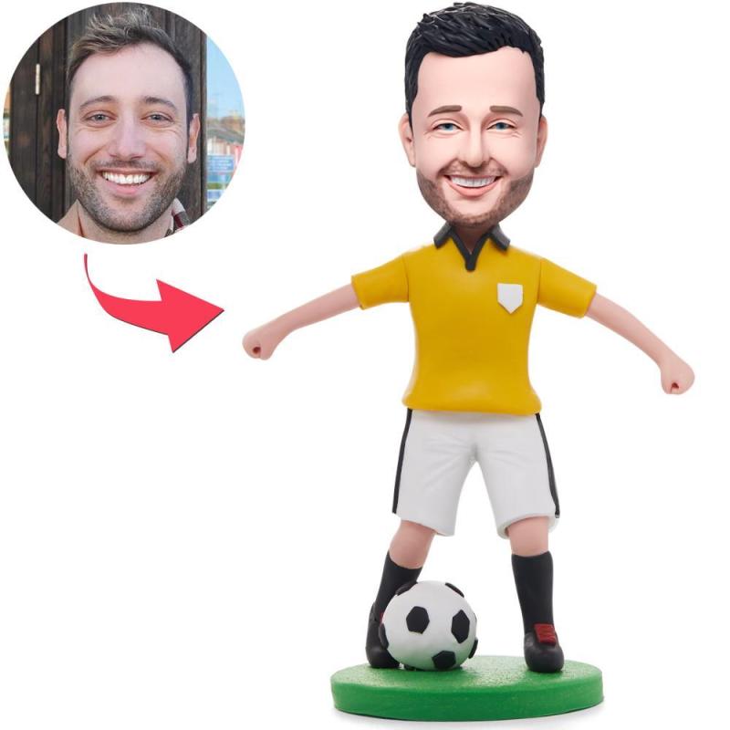 Joueur De Football/football Dribble En Chemise Jaune Bobblehead Personnalisé Avec Texte Gravé