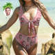 Visage Bikini Personnalisé Visage Bikini Femme Sangle de Poitrine Maillot de Bain pour Petite Amie ou Femme Drôle Personnalisé Photo Mon Amant Bikini Anniversaire Cadeau d'Anniversaire - Motif Léopard Rose