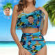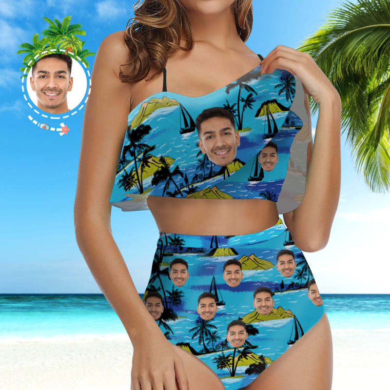 Visage Bikini Visage Maillot de Bain Bikini à Volants Personnalisé avec Face Taille Haute - Cocotier